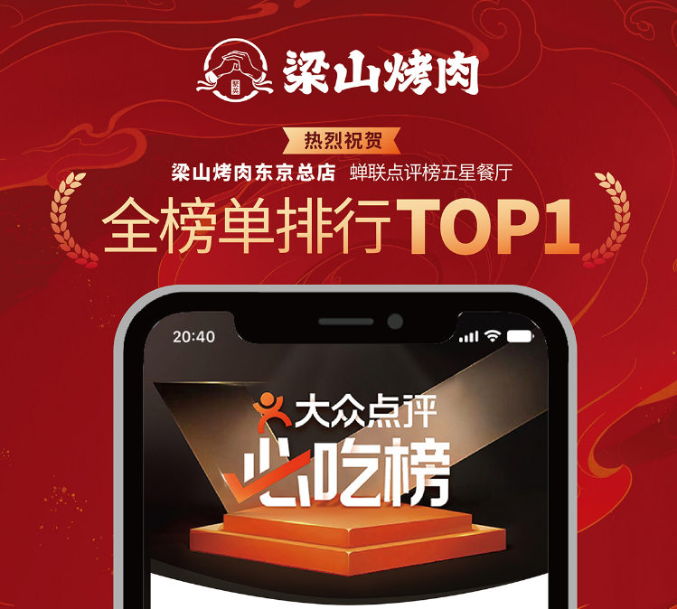 热烈庆祝梁山烤肉东京总店继续蝉联五榜TOP1!