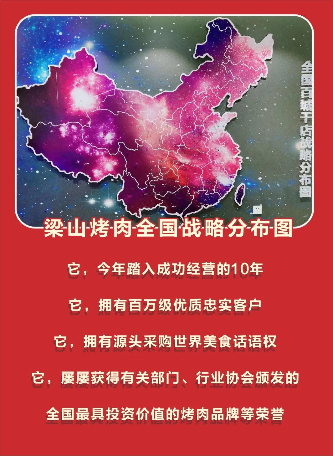 梁山烤肉作为中式炭火烤肉的领先品牌,强大的后端供应链+独树一帜的品牌特色+拥有多年管理经验的团队,汇聚梁山烤肉雄厚的品牌实力。门店所开之处,店店火爆、店店爆满!