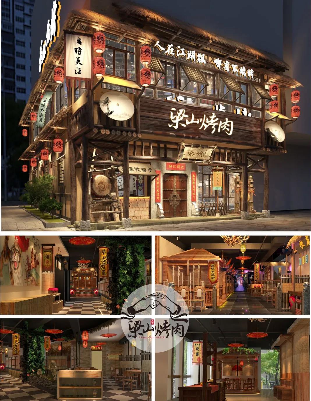 梁山烤肉—中式炭火烤肉领先品牌。源于北宋传统文化,梁山烤肉将特色炭火烤肉与水浒主题特色风格融为一体!独树一帜的餐饮氛围、至臻至善的食材与口感,使梁山烤肉获得了广大食客的喜爱与认可。仅两年时间,梁山烤肉已经拥有自营及合作店200+家,迅速成为人们熟知和喜爱的烤肉品牌。