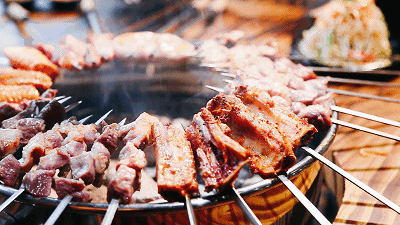 梁山烤肉还原了舌尖上的美味。牛肉、羊肉、五花肉串,劲爽麻辣味、黑椒味、古法秘制纯肉肠更是别有一番风味。