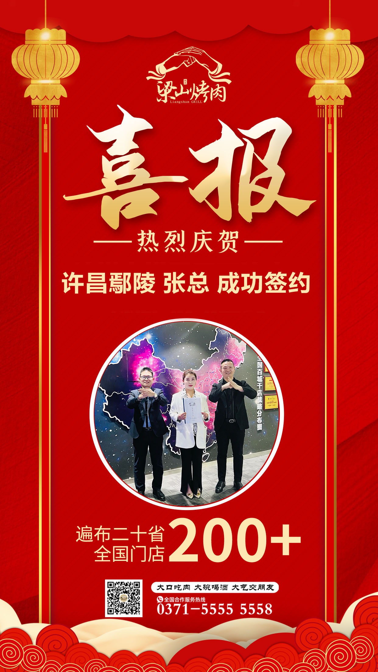 热烈祝贺【许昌鄢陵张总】喜提梁山烤肉新门店