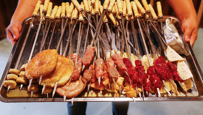 以前不太抓市容市貌和环保的时候,每年到夏季的傍晚,一些店里会把各类食材摆出来,在门口支起烧烤架子,羊肉、牛肉、鸡、海鲜等只要能吃的都给你烤起来,万物皆可烤,不管是生殖器系统、消化系统,各个位置只有你想不到没有他们不能烤的。