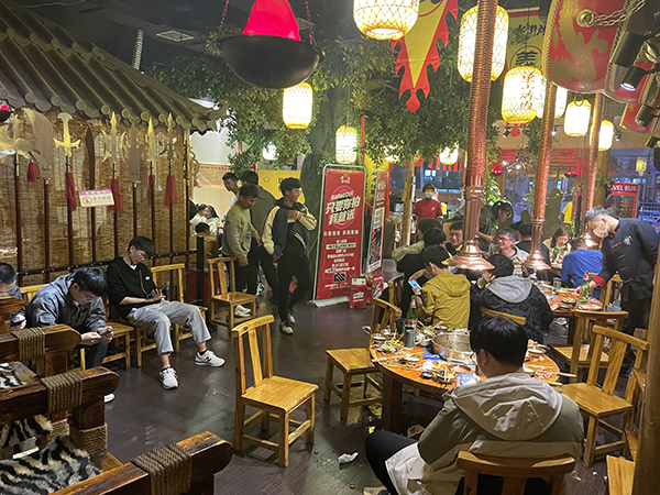 左手拿酒,右手拿串,大口撕咬,三五分钟后,话匣子打开,白天里的那些喜怒哀乐,近日以来的忧愁烦闷,也便觉得释怀了。除了烦闷,偶尔也可以吹一吹牛皮,指点江山,舍我其谁。