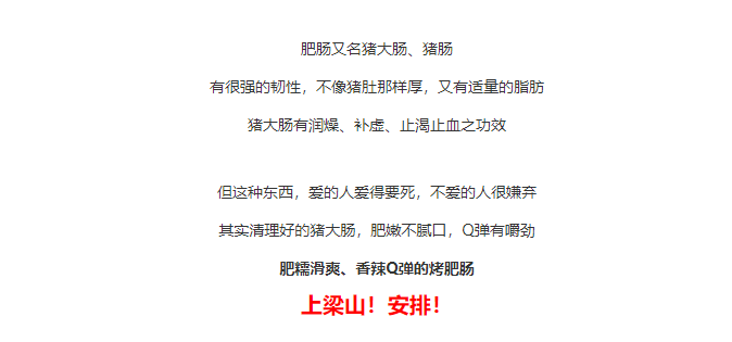 新品上市| 猛火现烤滋滋流油!没人会拒绝烤肥肠的香!辣!Q弹!