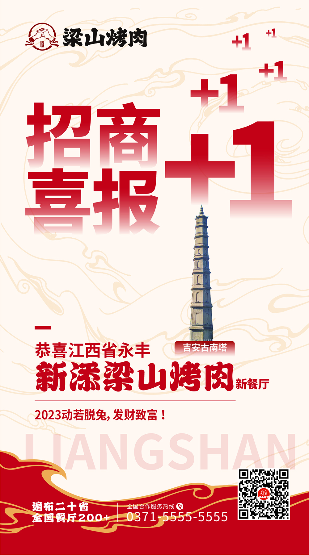 喜报|恭喜吉安永丰新添梁山烤肉餐厅!梁山烤肉全国门店再+1!预祝开业大吉!