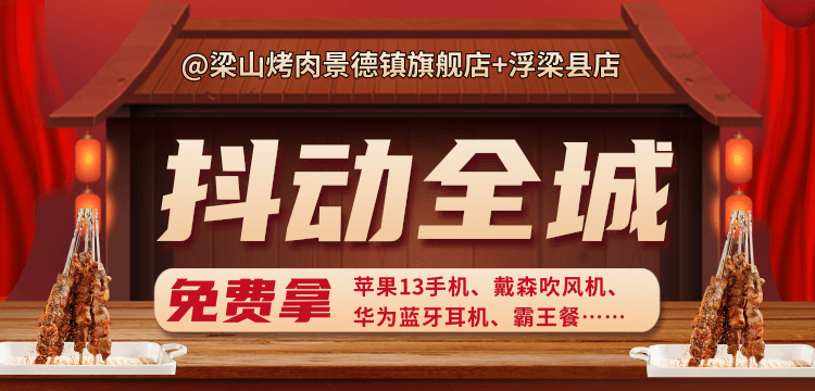 梁山烤肉景德镇抖动全城活动手机、霸王餐、耳机免费拿,速来围观!