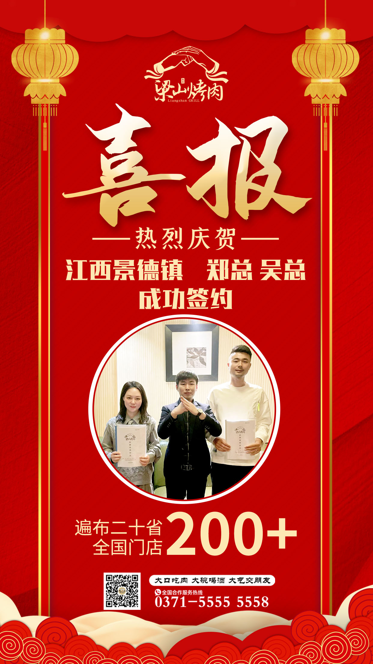 热烈祝贺【景德镇吴总、郑总】强强联合,再次喜提梁山烤肉新门店